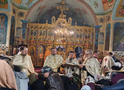 14 Aprilie 2014 Viața parohiei Biserica - vedere exterioarăInterior bisericăIcoana Sfinților Arhangheli Mihail și Gavriil - mozaicSlujba aghesmei